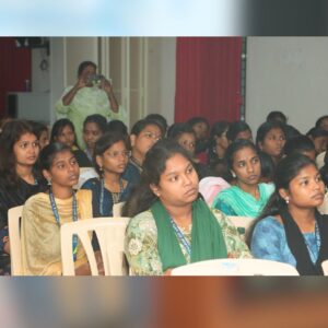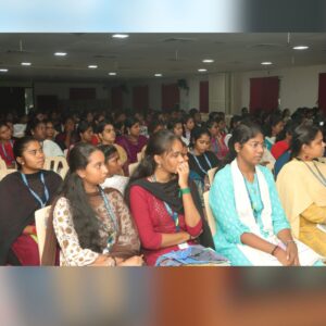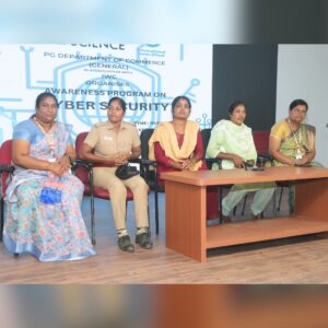 The event was convened by Dr. P. Karthika, Head of the Department, and featured Ms. N. Zaina Mariyam as the Master of Ceremony. Students actively interacted during the session, learning how to protect themselves in the digital world. Around 250 students and faculty members attended the informative program.