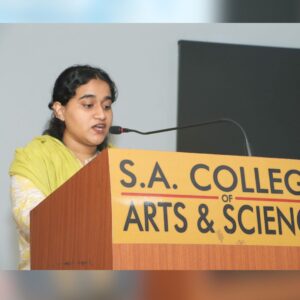 The PG Department of Commerce of S.A. College of Arts & Science organized an Awareness Program on Cyber Security on 24th October 2025 at the college auditorium. The session was led by Mrs. P. Muthumari, Sub-Inspector of Police, IUCAW Wing, who educated students on cybercrimes, preventive measures, and the legal aspects of online safety.