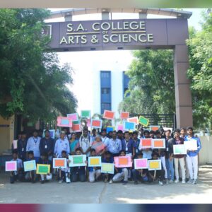 S.A. College of Arts & Science, in association with the Department of Bank Management, celebrated World Gratitude Day on September 25, 2025, with a vibrant human chain formation at the SAEC Main Gate. The event highlighted values of gratitude, unity, and social harmony, creating a meaningful atmosphere across the campus.