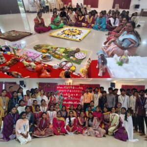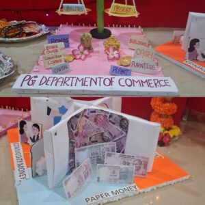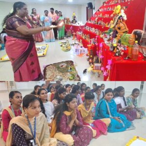 The fifth day of the Golu Celebration was successfully organized by the Department of Commerce General, the Department of Mathematics, and the Placement Cell, integrating the theme with the Indian Knowledge System. The event highlighted the ‘Evolution of Banking’ through an innovative display that traced the journey of financial practices from traditional barter systems to the digital banking era, showcasing how India’s ancient wisdom continues to influence modern economic frameworks. A special attraction was the miniature representation of a Balance Sheet, creatively designed by students to illustrate the fundamentals of accounting in a simple yet effective manner. This exhibit emphasized the importance of financial literacy in today’s world and its direct link to sustainable economic growth. The celebration not only blended tradition with modern knowledge but also encouraged students to connect academic learning with cultural values, aligning with the holistic vision of the Indian Knowledge System and the Sustainable Development Goals.