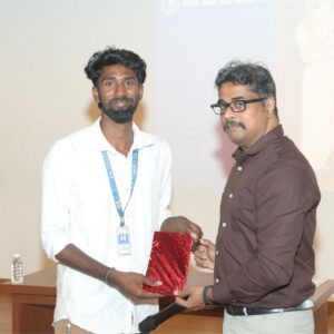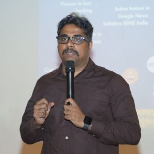 The event opened with a welcome address by Dr. Srinivasan, Head of the Department, followed by introductions by Prof. Shridevi. The keynote address was delivered by Mr. Iyan Karthikeyan, Mission Director, TN Fact Check Unit, who shared field experiences on combating misinformation and the growing importance of fact-checking in today’s media landscape.