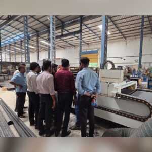 The II MBA students specializing in HR and Logistics gained valuable exposure to modern manufacturing practices. They observed advanced machinery such as robotic welding machines, steel cutting systems, particle board applications, Edge Tech and Wood Tech machines, and the Quick CNC machine integrated with AutoCAD for customized designs. Students also witnessed the use of particle wood in furniture making, including chairs for offices and laboratories, and the Qblacer machine for cutting steel tubes.