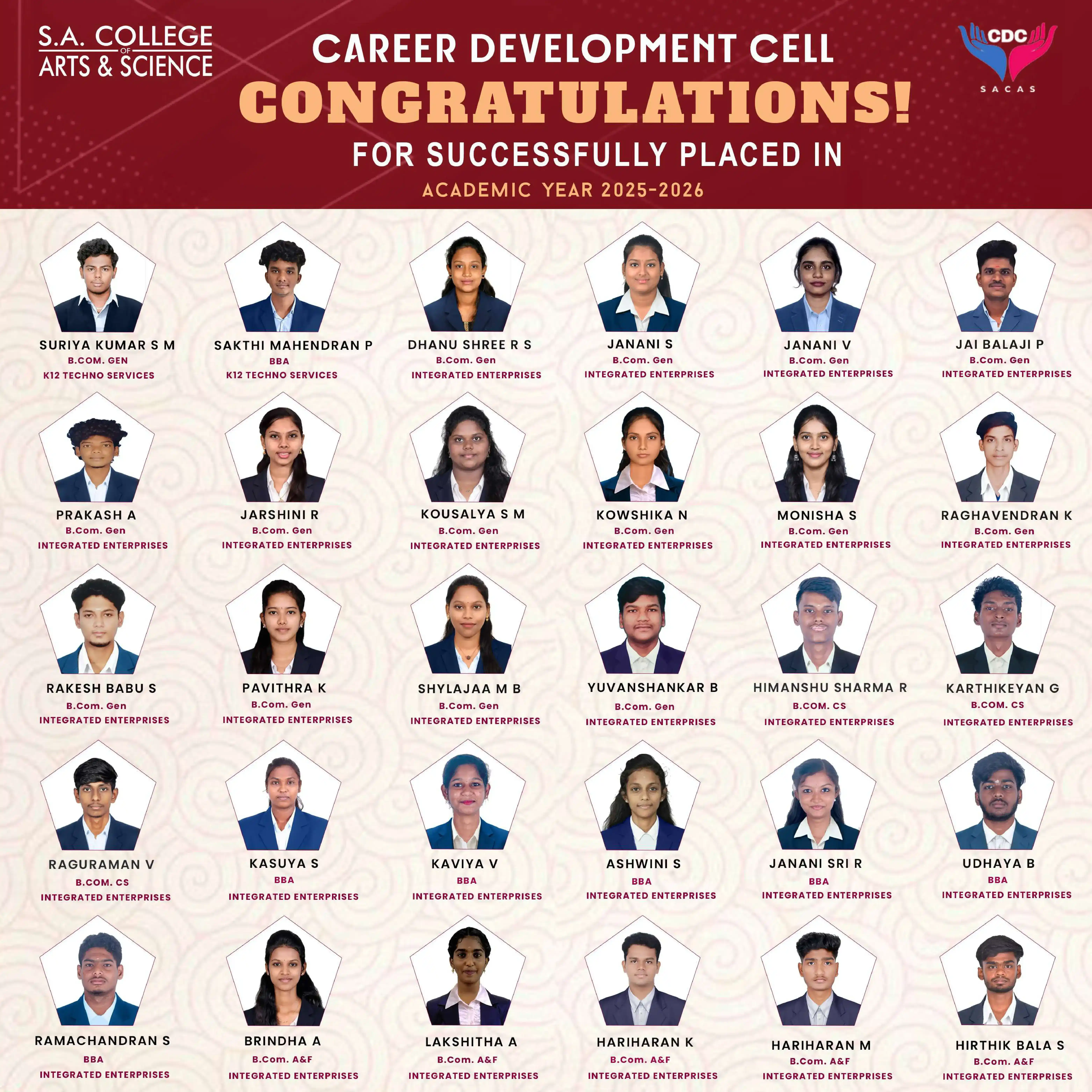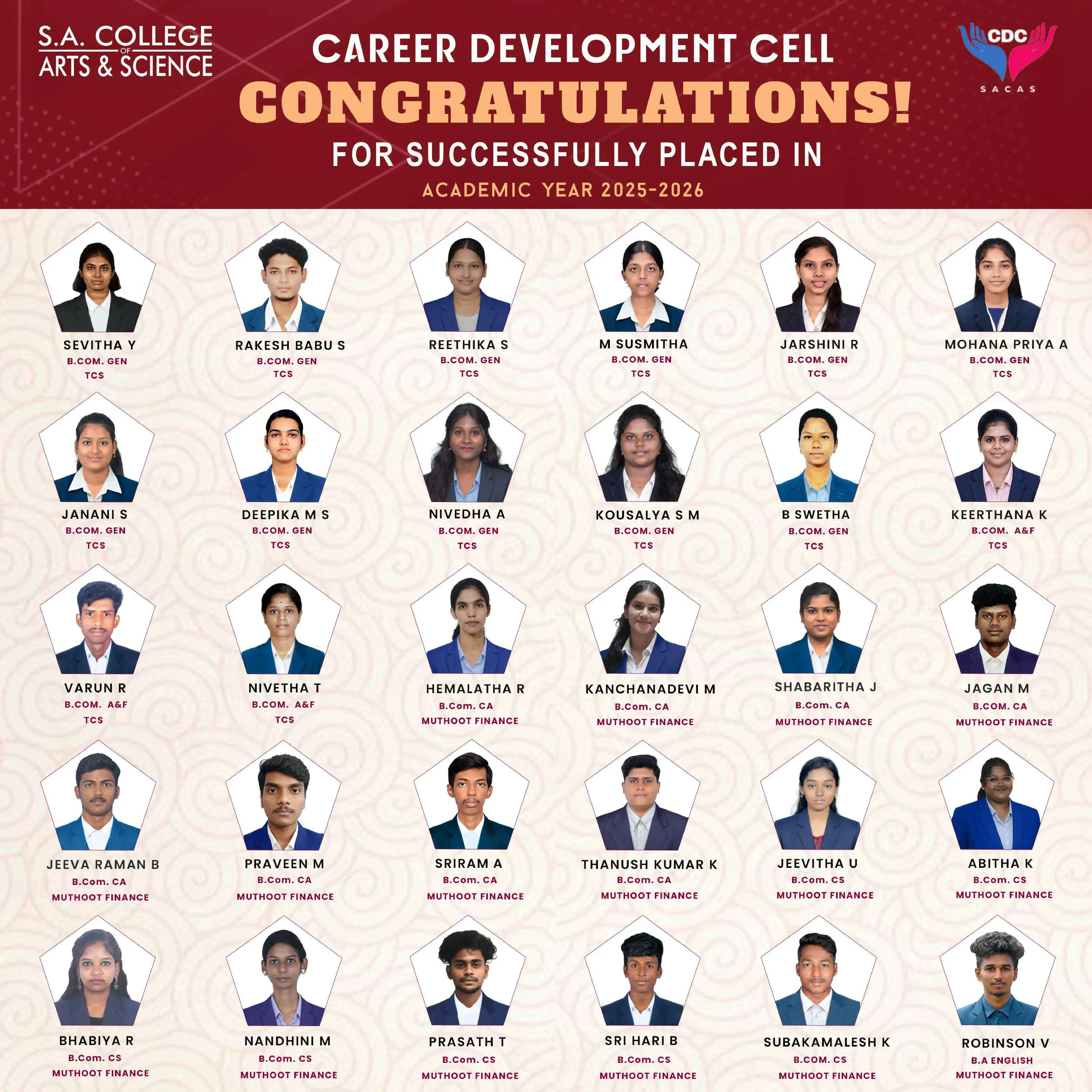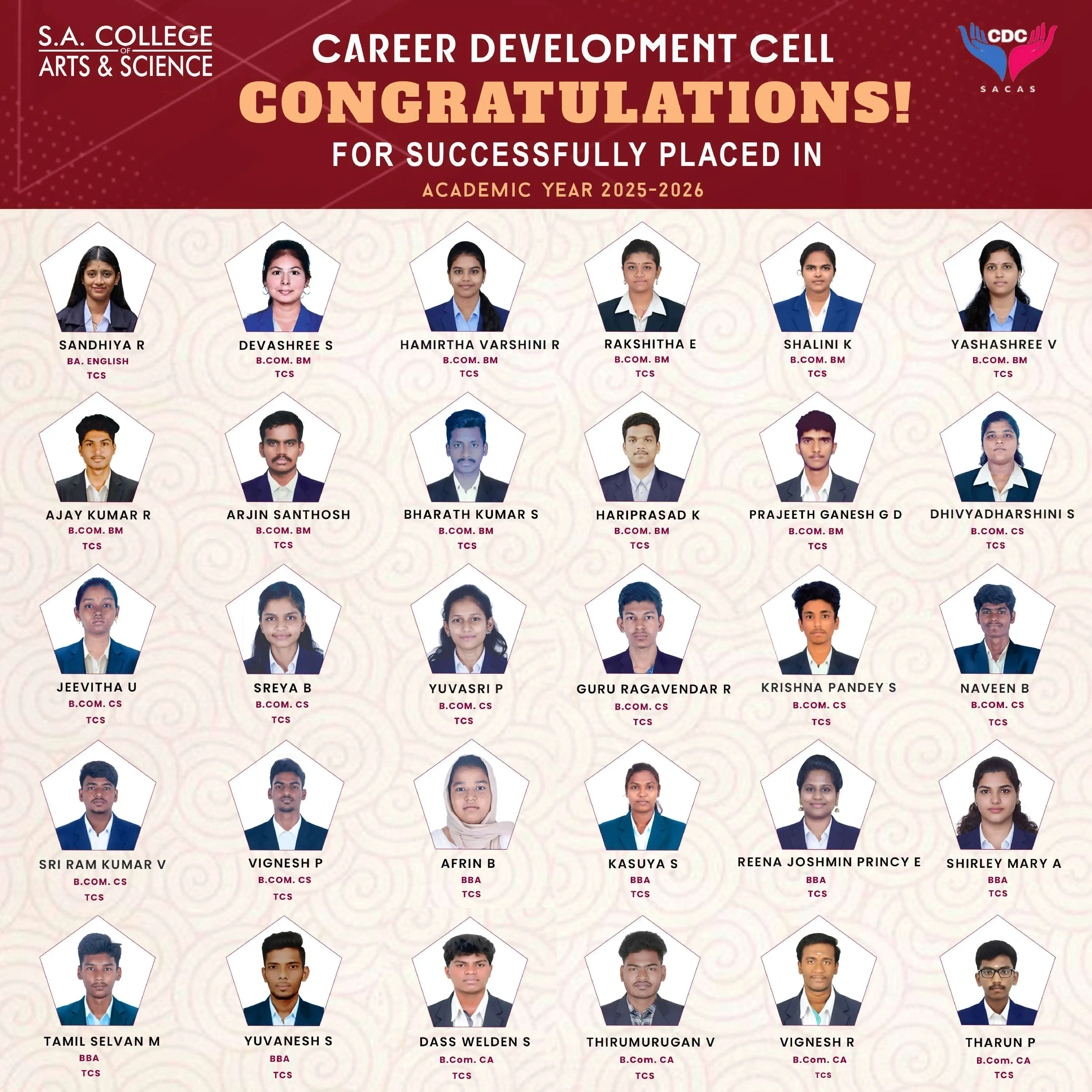At SACAS, the Placement Cell plays a pivotal role in bridging the gap between academia and industry. We ensure our students are well-equipped with the skills, knowledge, and confidence to excel in the competitive job market.
