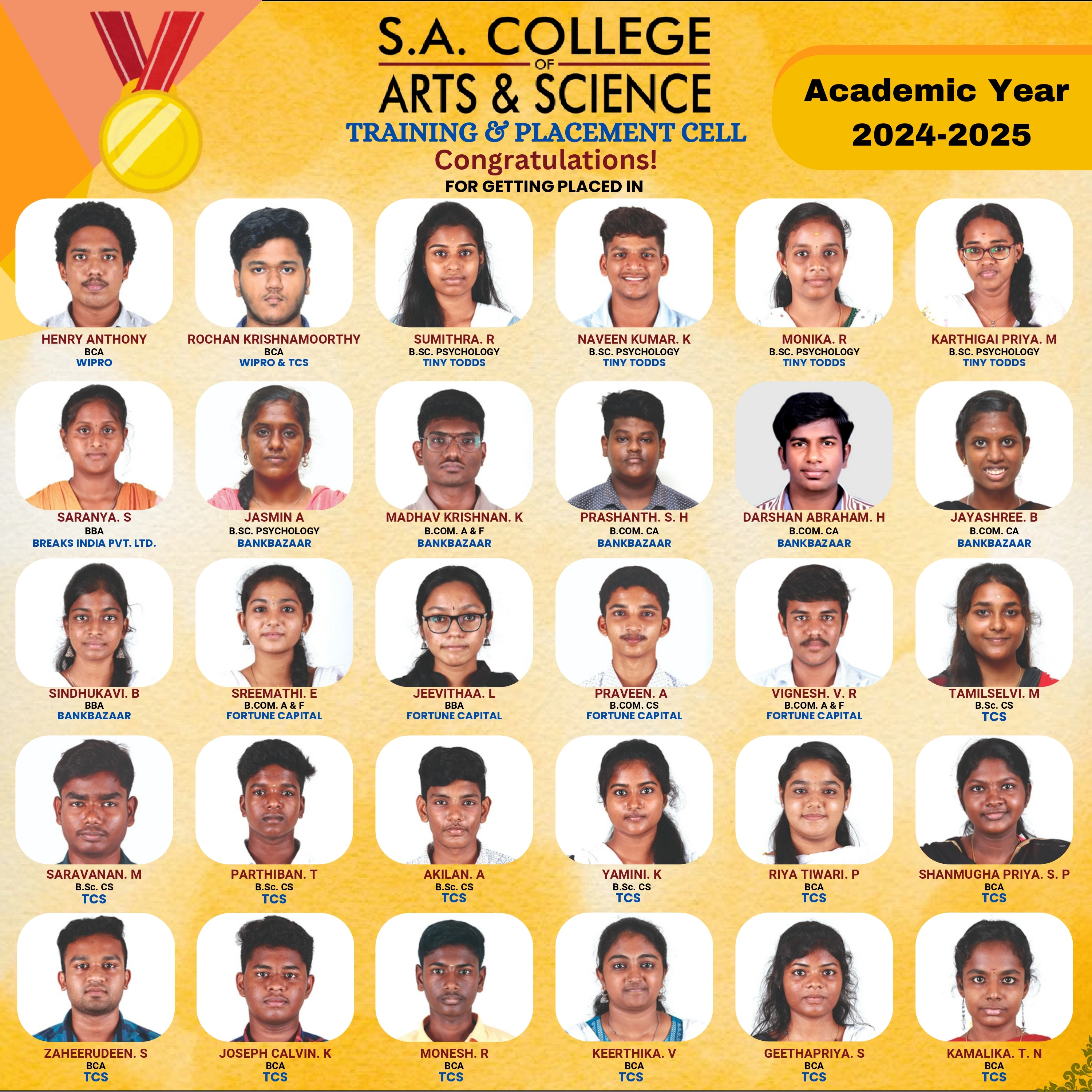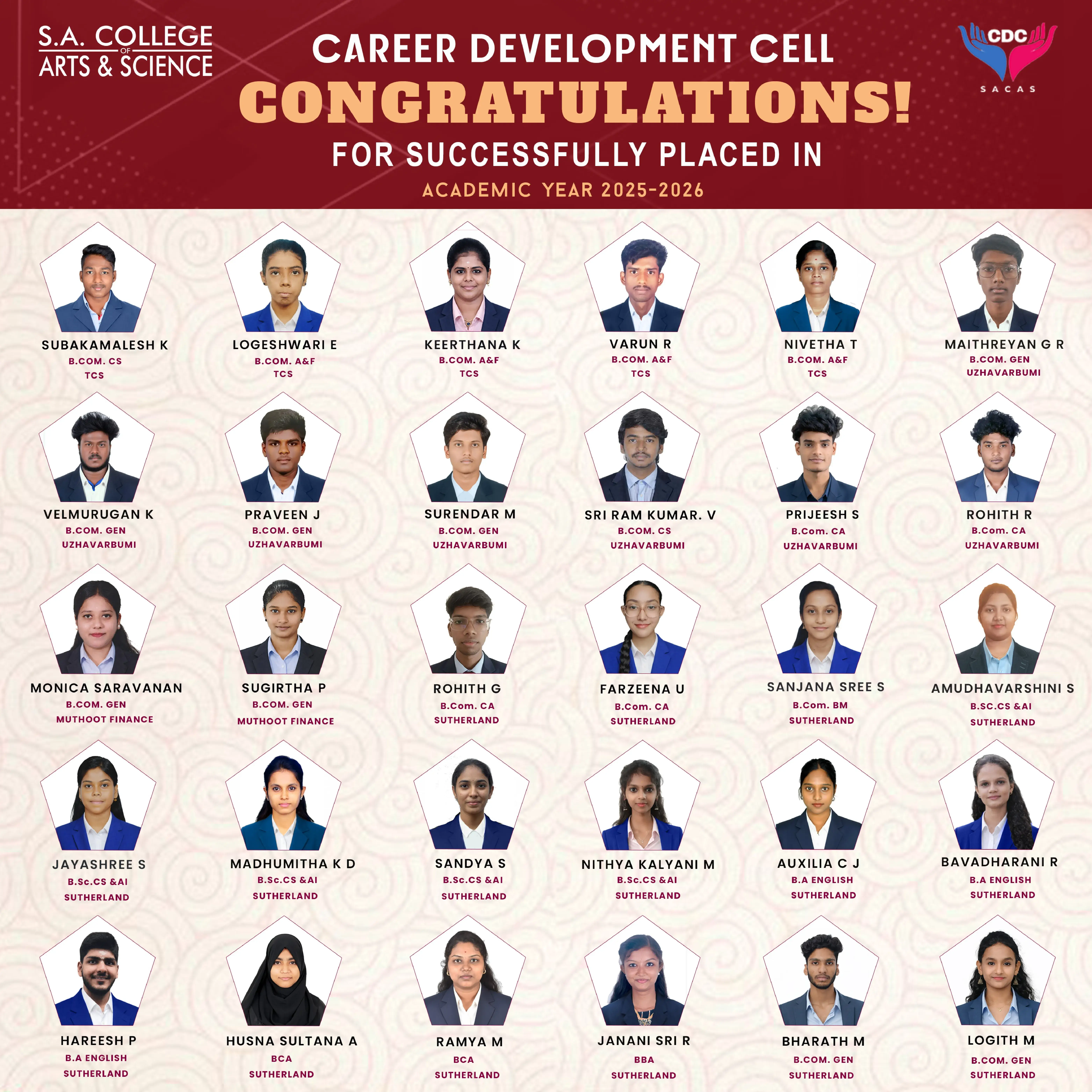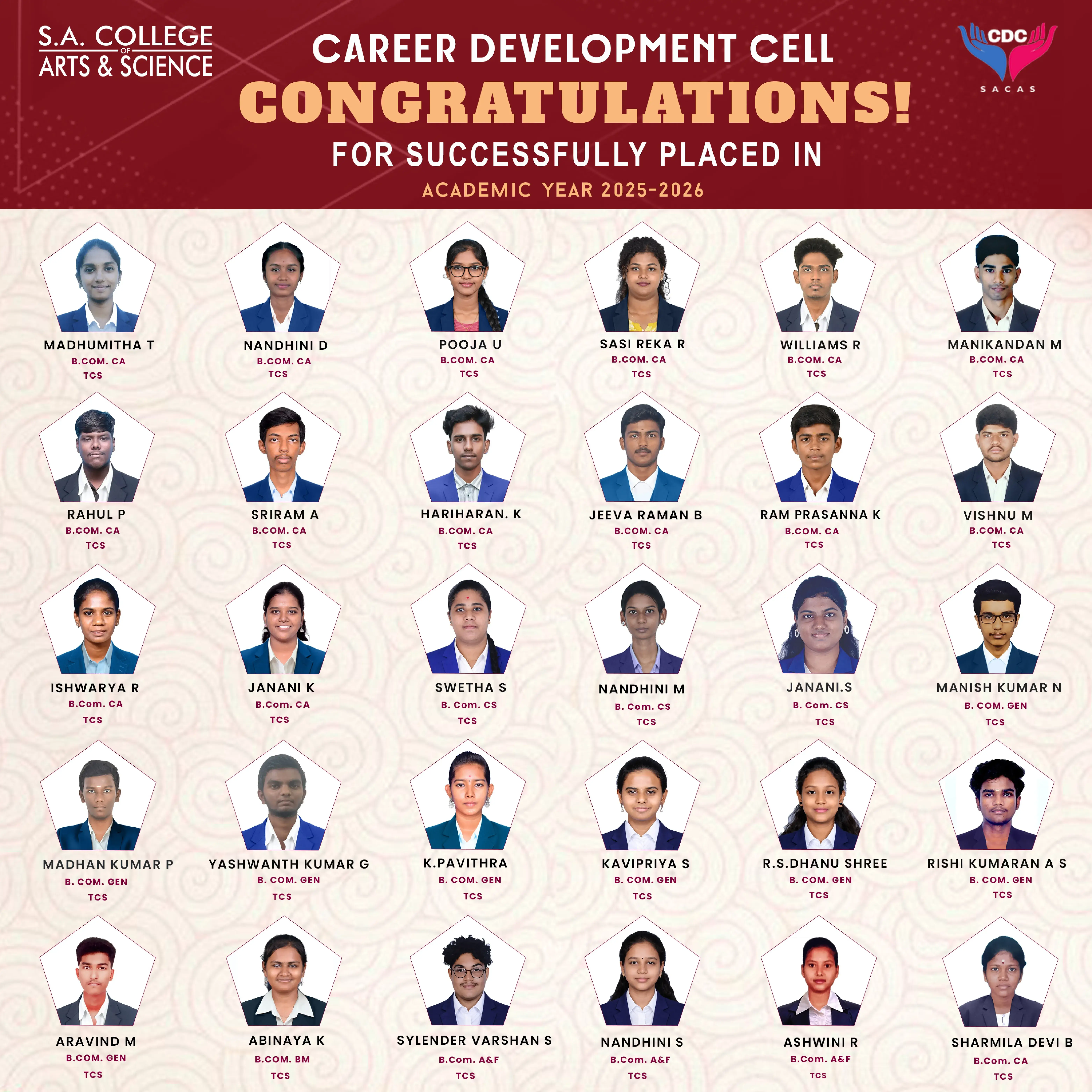 At SACAS, the Placement Cell plays a pivotal role in bridging the gap between academia and industry. We ensure our students are well-equipped with the skills, knowledge, and confidence to excel in the competitive job market.